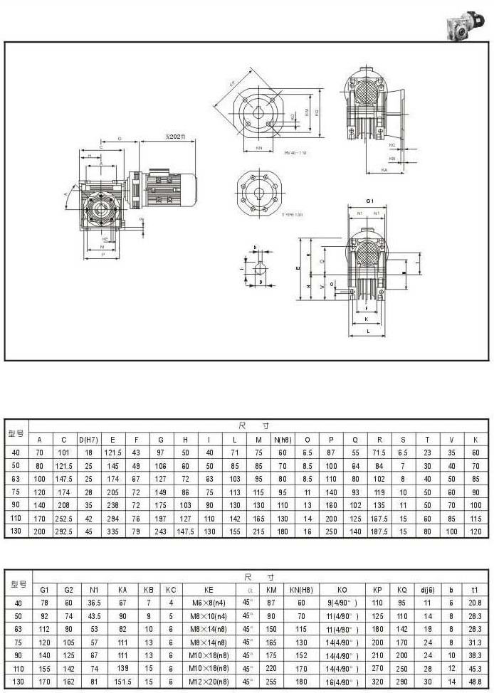 蝸輪減速機與擺線減速機組合型技術參數表(輸出扭矩N.M)三