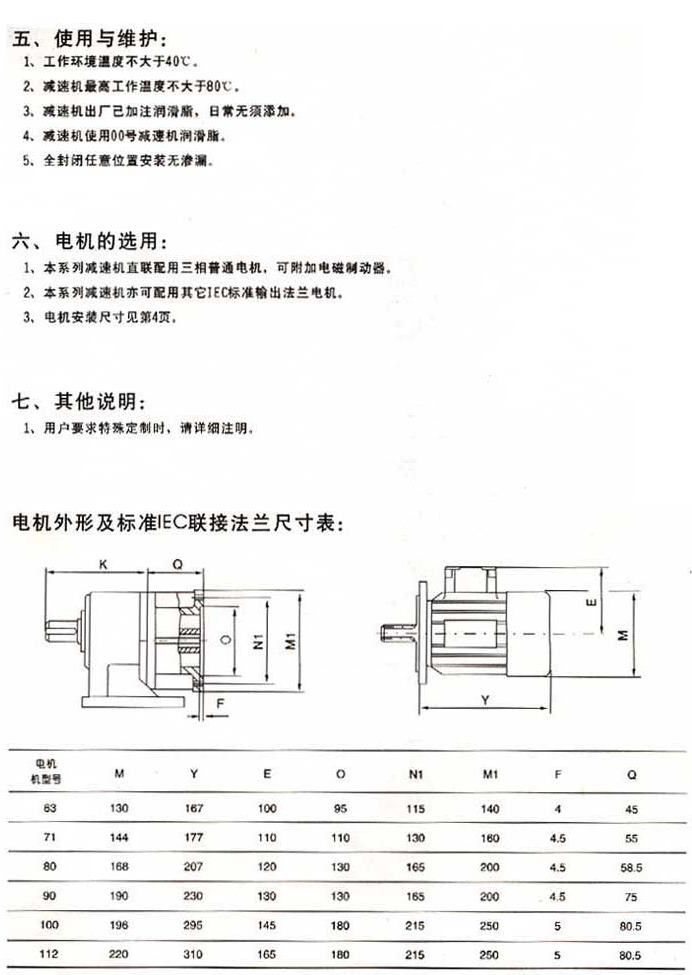 使用與維護(hù)電機(jī)的選用其他說(shuō)明電機(jī)外型及標(biāo)準(zhǔn)IEC聯(lián)結(jié)法蘭尺寸表